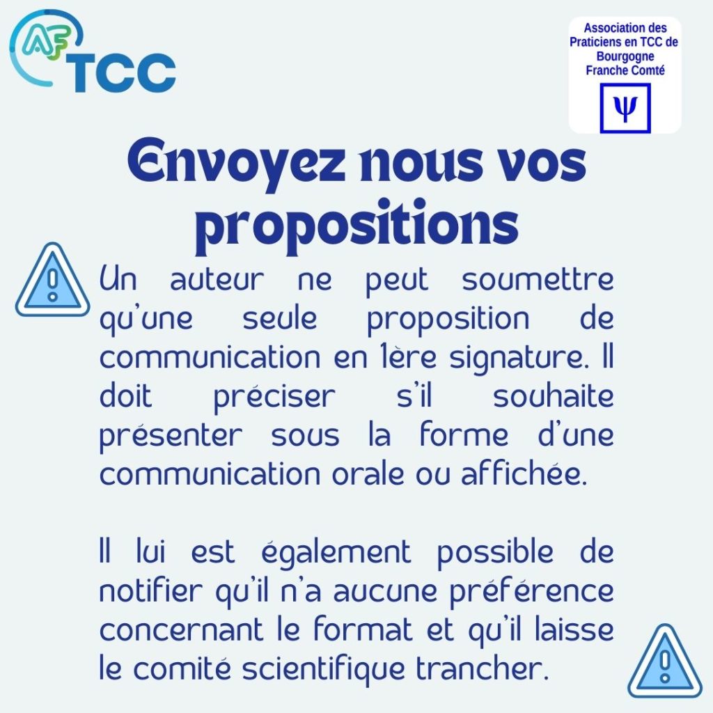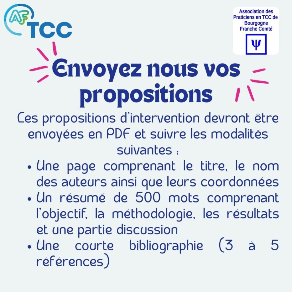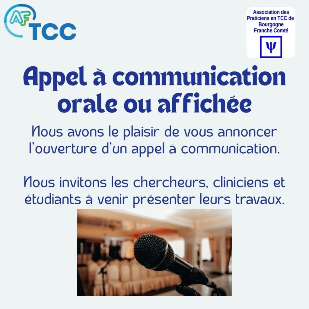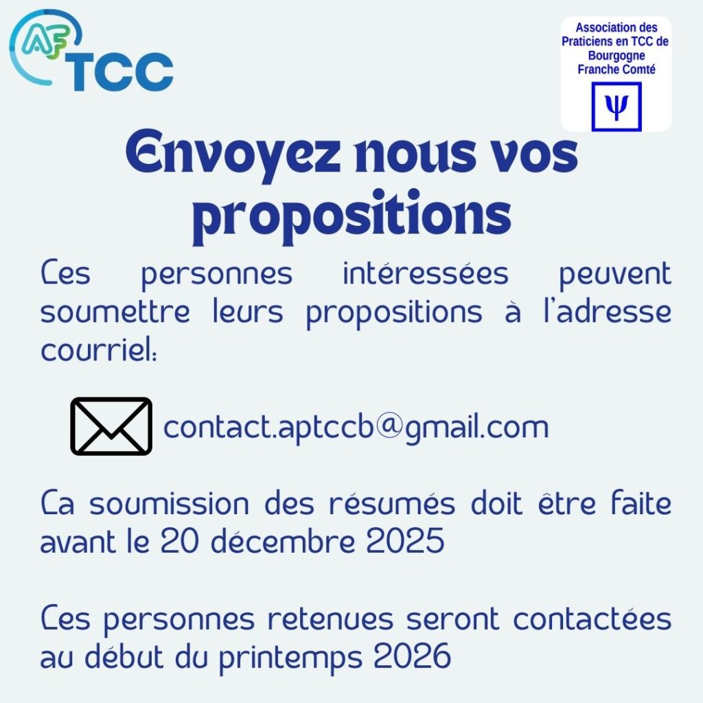 Nous avons le plaisir de vous annoncer l’ouverture d’un appel à communication en prévision des Journées Régionale de TCC de 2026 à Dijon.