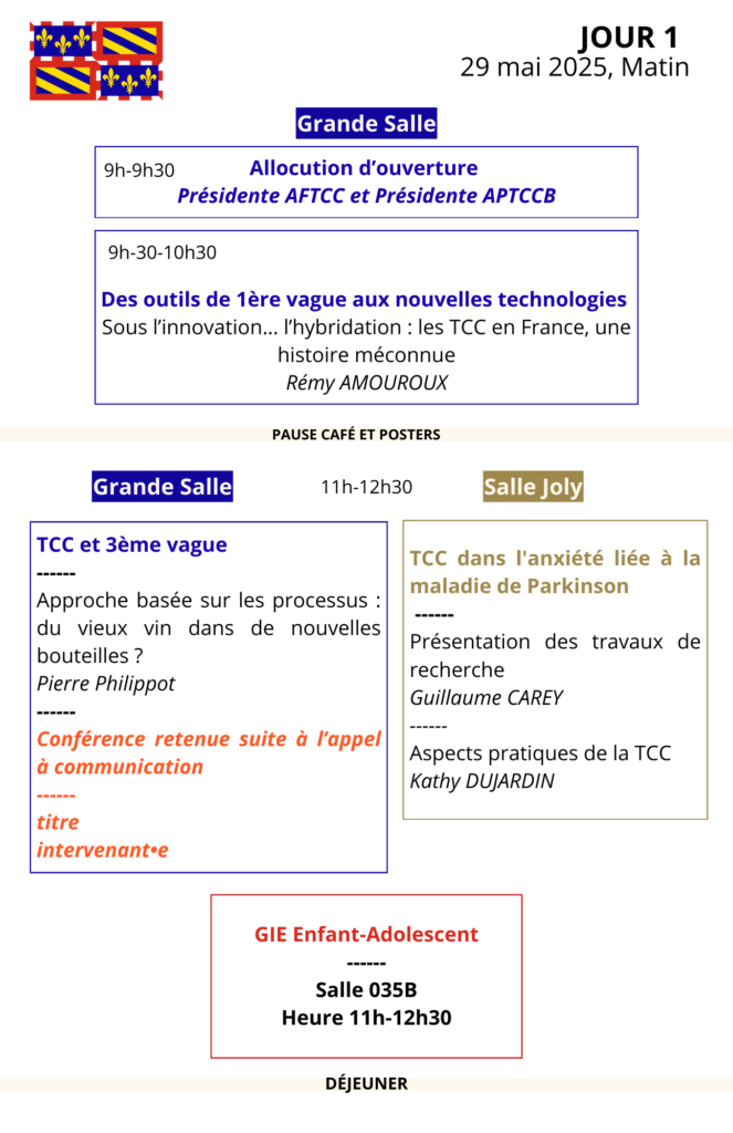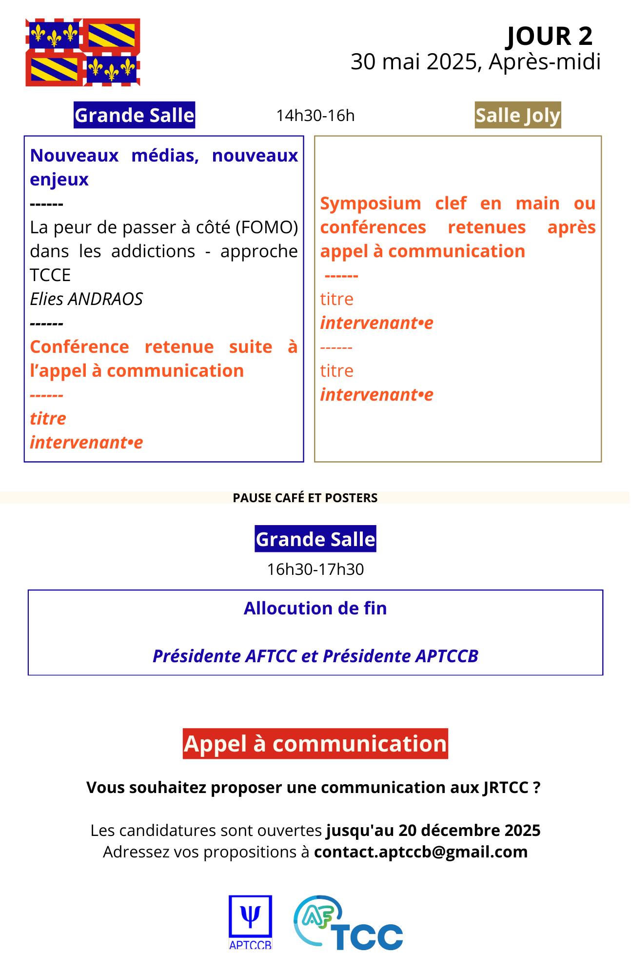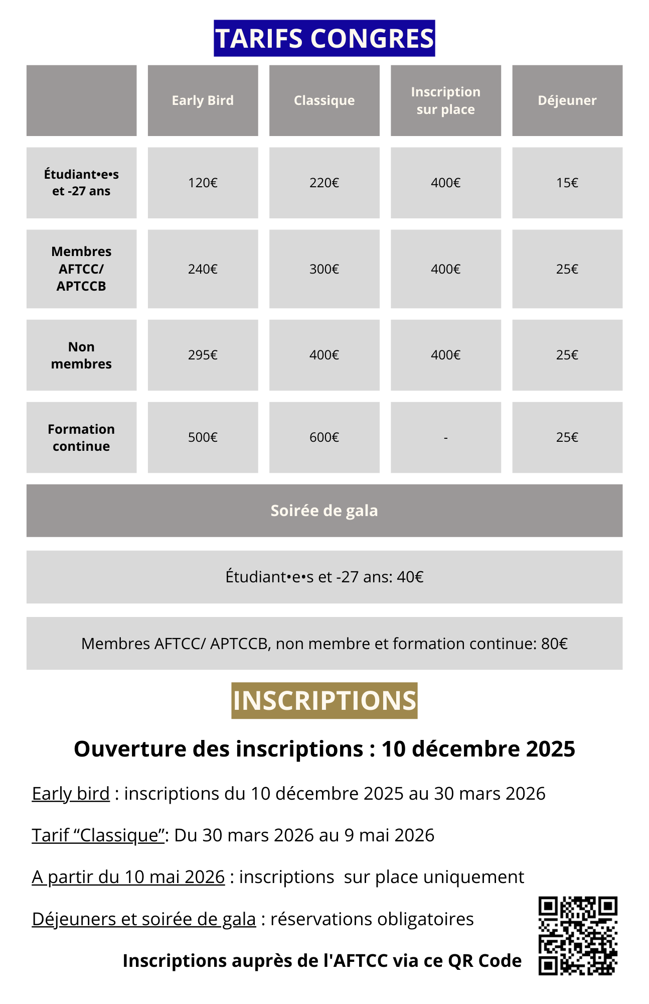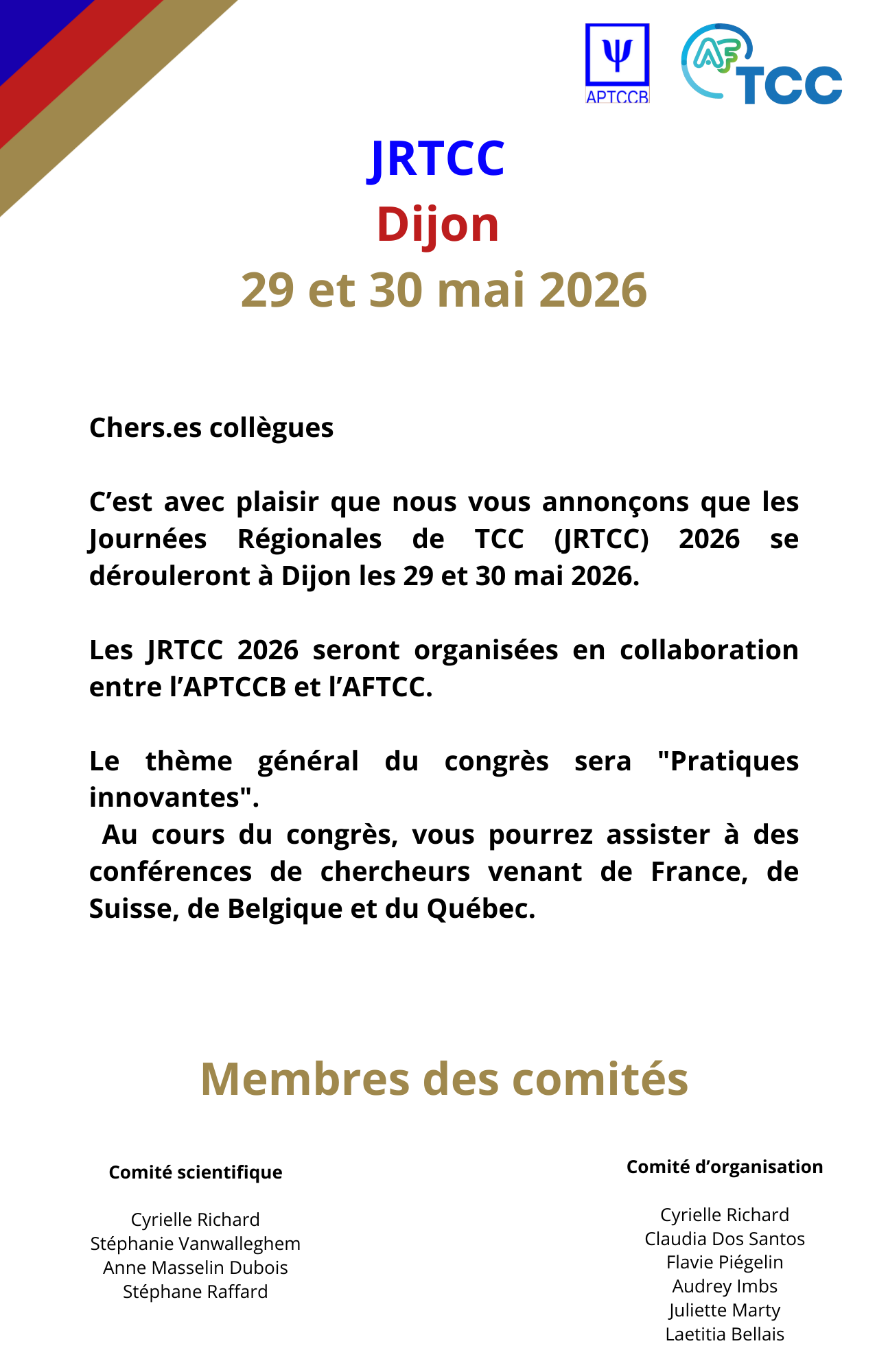 L’APTCCB a le plaisir de collaborer avec l’AFTCC à l’organisation des Journées Régionales de TCC 2026